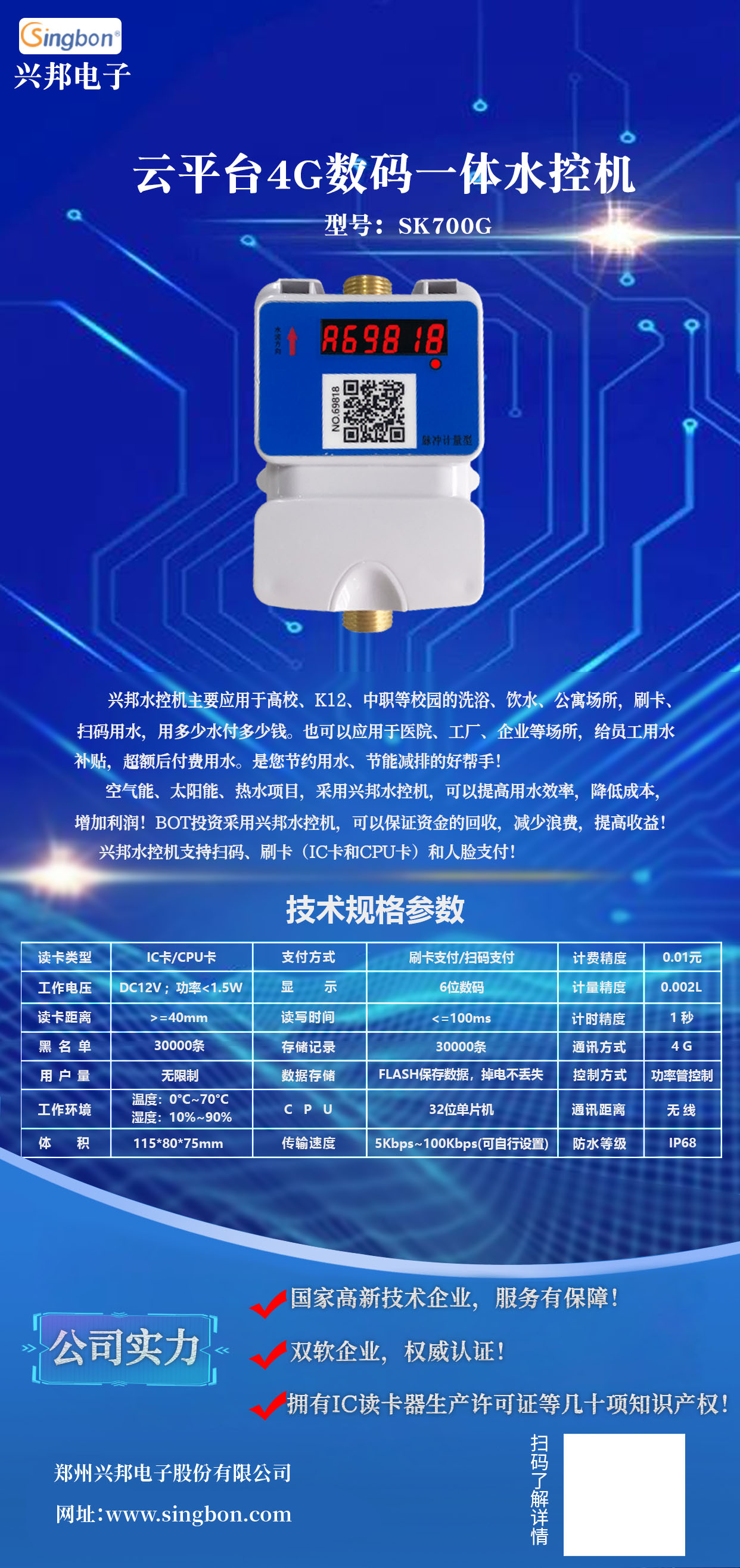 云平臺4G數碼一體水控機適用于學校、工廠、醫院等單位的公寓、宿舍洗浴等各種需要節水的場所。
