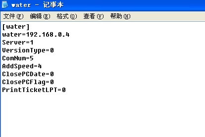 4、找到一卡通系統(tǒng)安裝目錄,修改里面名稱為water配置文件里的water為服務(wù)器端的IP地址。如圖: