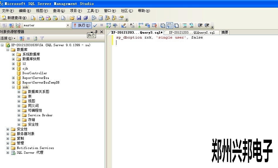 3. 輸入登錄名和密碼后,按"連接"按鍵,會進入下一下畫面,在此畫面輸入sp_dboption 數(shù)據(jù)庫名, 'single user', false此命令