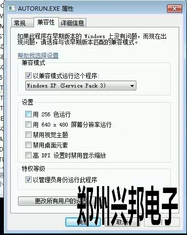 此時如何調試才能安裝數據庫2000,在AUTORUN.EXE上右擊,把兼容模式勾選上“以兼容模式運行這個程序”,特權等級中勾選上“以管理員身份運行此程序”。