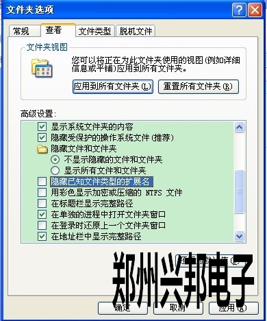 2. 打開我的電腦-->工具-->文件夾選項,把查看中的“隱藏已知文件類型的擴展名”去掉。