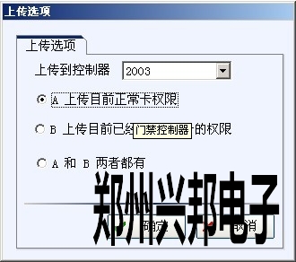 選擇控制器,并選擇要上傳的卡類(lèi)型。之后點(diǎn)擊【確定】按鈕完成上傳開(kāi)門(mén)權(quán)限的功能。