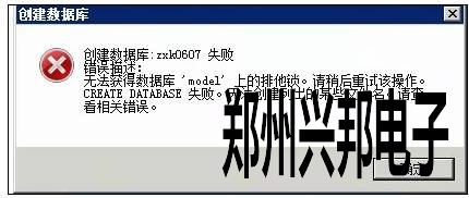 創(chuàng)建數(shù)據(jù)庫(kù)失敗,提示無(wú)法獲得數(shù)據(jù)庫(kù)‘model’上的排他鎖,如下圖所示: