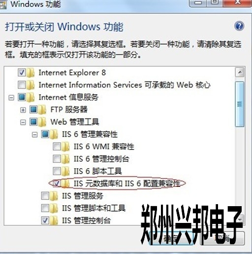 1)IIS7是沒有元數據庫的,所以必須安裝兼容IIS6的組件;