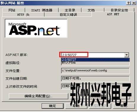 2)查看默認網站屬性中ASP.NET的版本,如下圖所示,必須是2.0.50727。