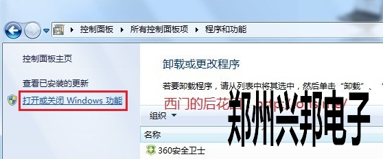 2. 點擊左側打開或關閉Windows功能”。