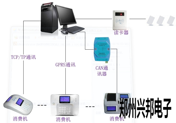 IC卡中文液晶消費機(jī)的網(wǎng)絡(luò)布線圖
