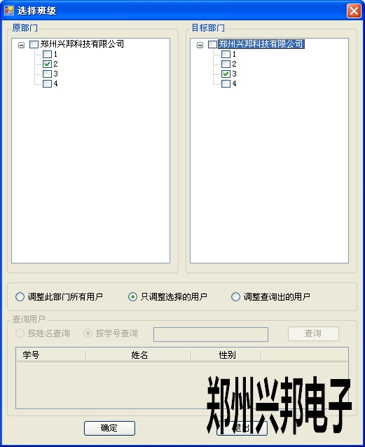 2、也可以通過調整部門來改變卡信息里的部門。調整人員的部門,可選擇調整部門所有用戶、只調選擇的用戶或者調整查詢出的用戶。