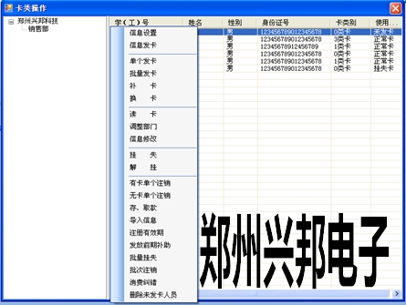 1、用出納卡登錄軟件,打開卡管理,有卡的話把卡放讀卡器上,右擊會出現一個卡信息修改,可以通過這個單獨的修改部門。