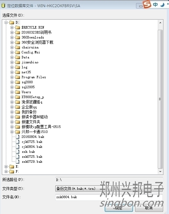 點(diǎn)擊“...”,出現(xiàn)下圖頁面,選擇合適的路徑,文件名以備份當(dāng)天日期命名(后綴為.bak)。